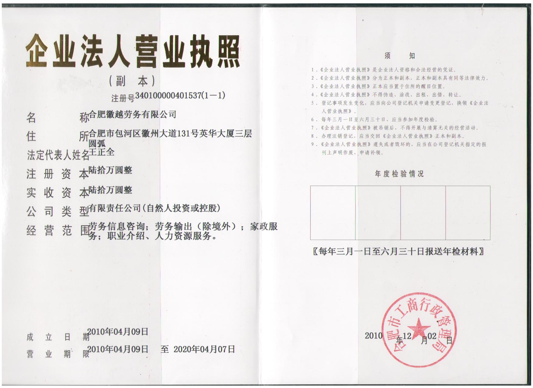 徽越公司自2008年中建總公司及多家世界500強企業授權招工資格以來,在同行業知名度信譽 度較高?;赵焦臼前不帐∫患医涍^合肥市工商行政管理局(安徽省工商行政管理局備案審核)、合肥市勞動和社會保障局及合肥市建設委員會(安徽省建設廳資質審批)審核批準成立的正規合法的且具有豐富建筑勞務輸出和項目施工管理經驗的信譽良好的勞務派遣和勞務分包...>>查看詳情